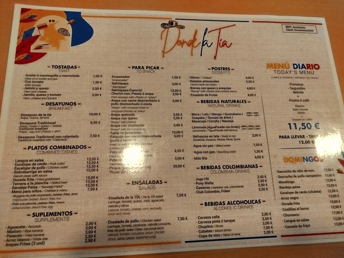 At Donde La Tia, located at Avinguda de Paris, 4, 03738 Platja de l'Arenal, Alicante, Spain, the menu offers a diverse range of dishes that showcase a delightful mix of flavors. One standout is the Bandeja Paisa, a hearty Colombian dish filled with rice, beans, pork, sausage, and a fried egg, creating a flavorful and satisfying meal. For those looking for something lighter, the Green Tea offers a refreshing option to balance the rich flavors.